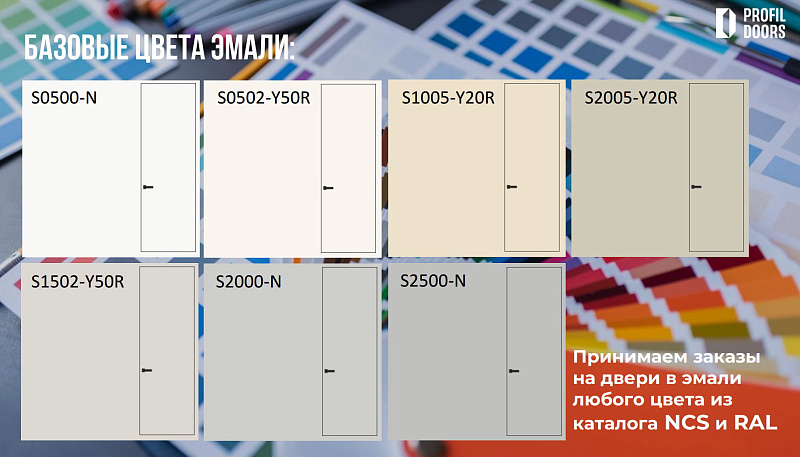Богатая палитра цветов и оттенков, предоставленная каталогами NCS и RAL, позволяет идеально подобрать цвет двери под любой интерьер, будь то строгий минимализм или изысканная классика.